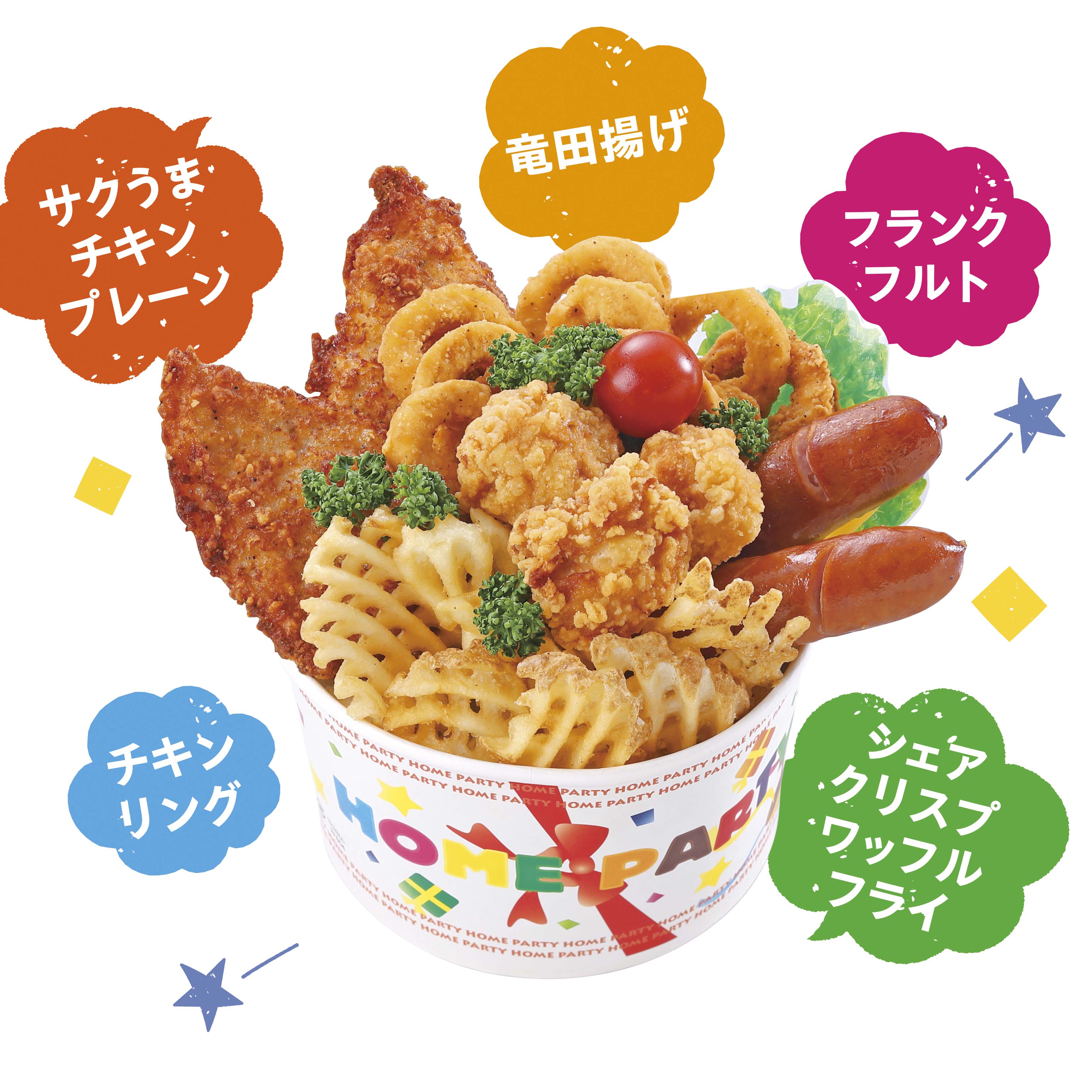 チキンリング・シェアクリスプワッフルフライ・竜田揚げ・フランクフルト・サクうまチキンプレーン