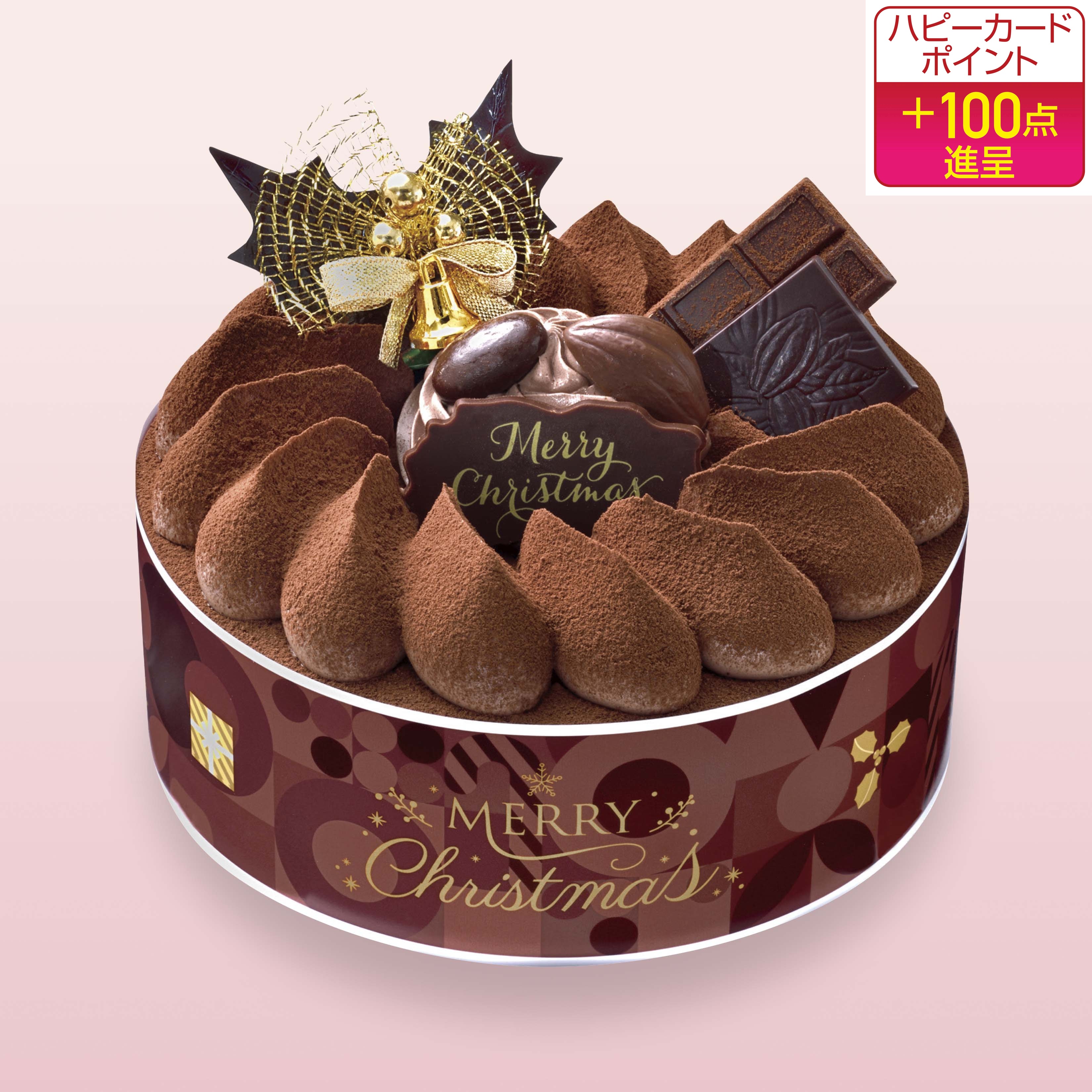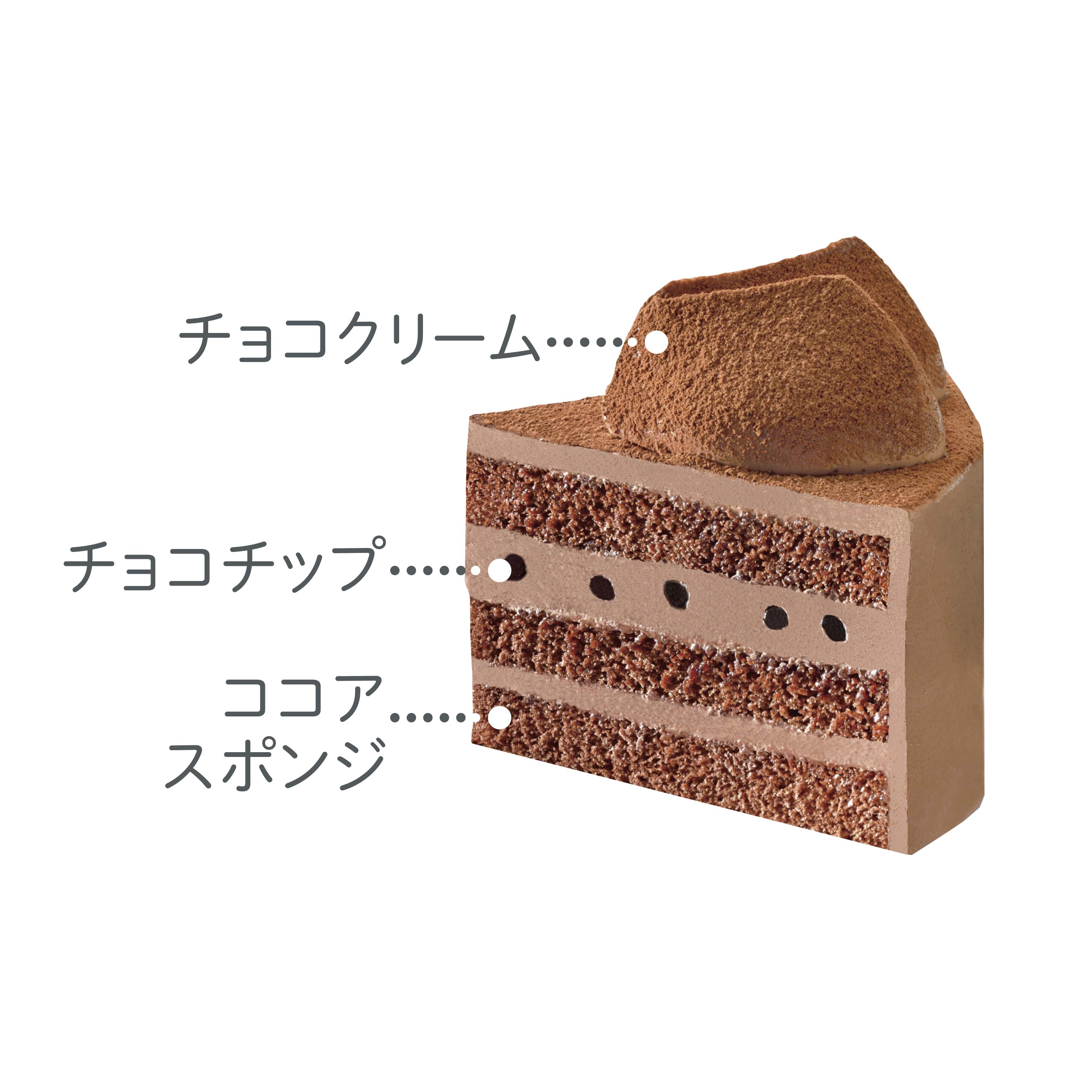 チョコチップとチョコクリームをサンドし、チョコをトッピングしたチョコづくしのクリスマスケーキです。