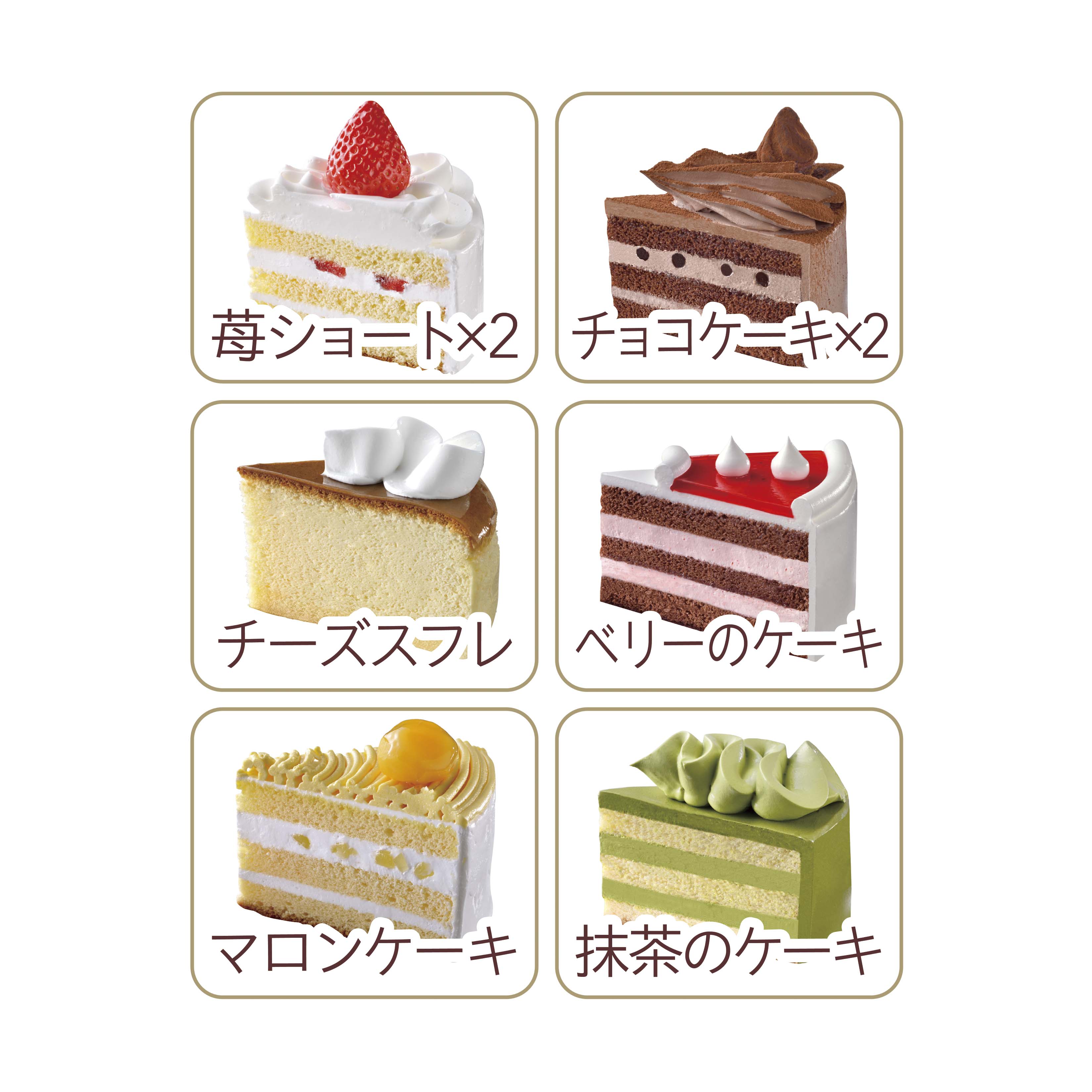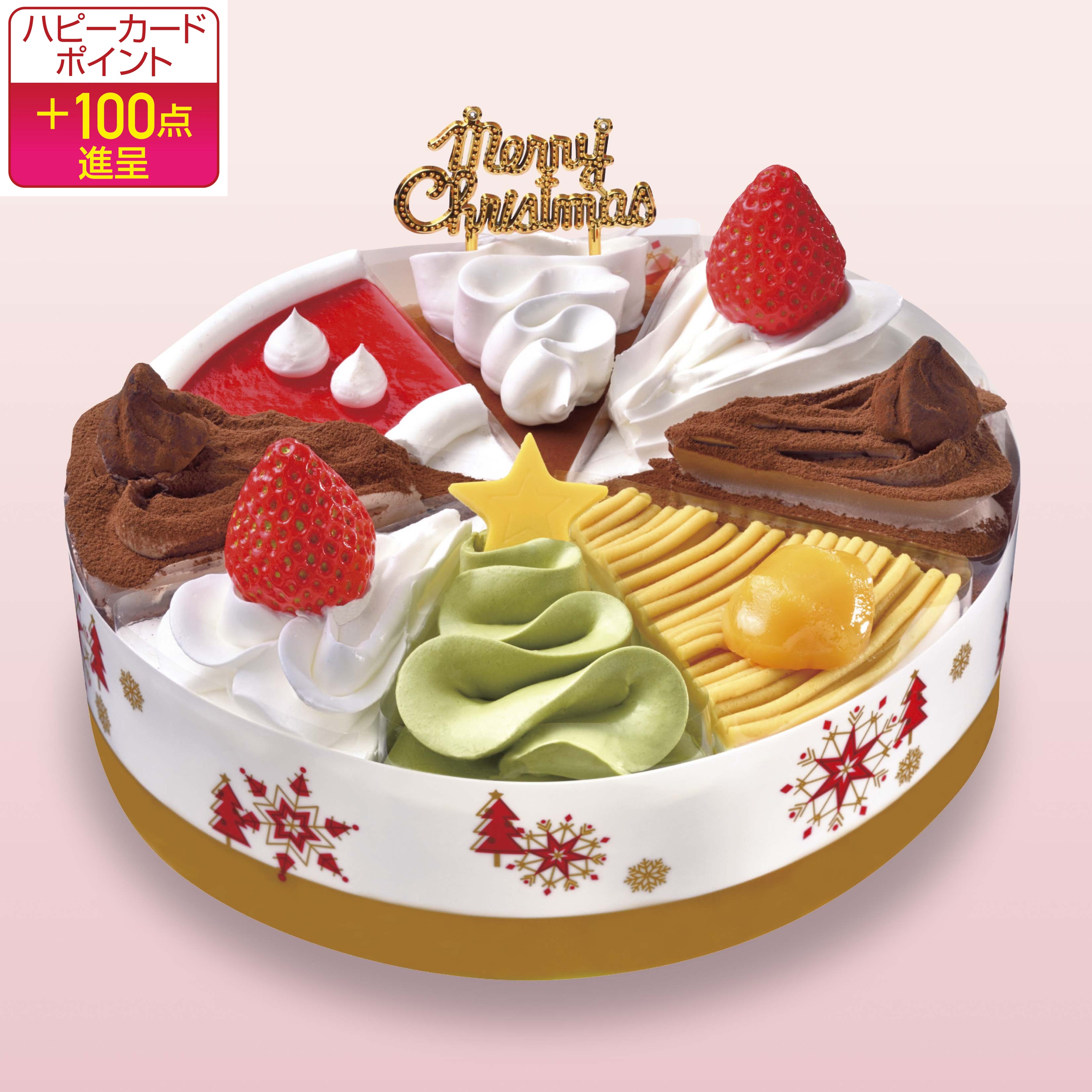 6種類の味が楽しめるパーティーにぴったりのクリスマスケーキです。(苺ショート 2個、チョコケーキ 2個、マロンケーキ 1個、チーズスフレ 1個、ベリーのケーキ 1個、抹茶のケーキ 1個)