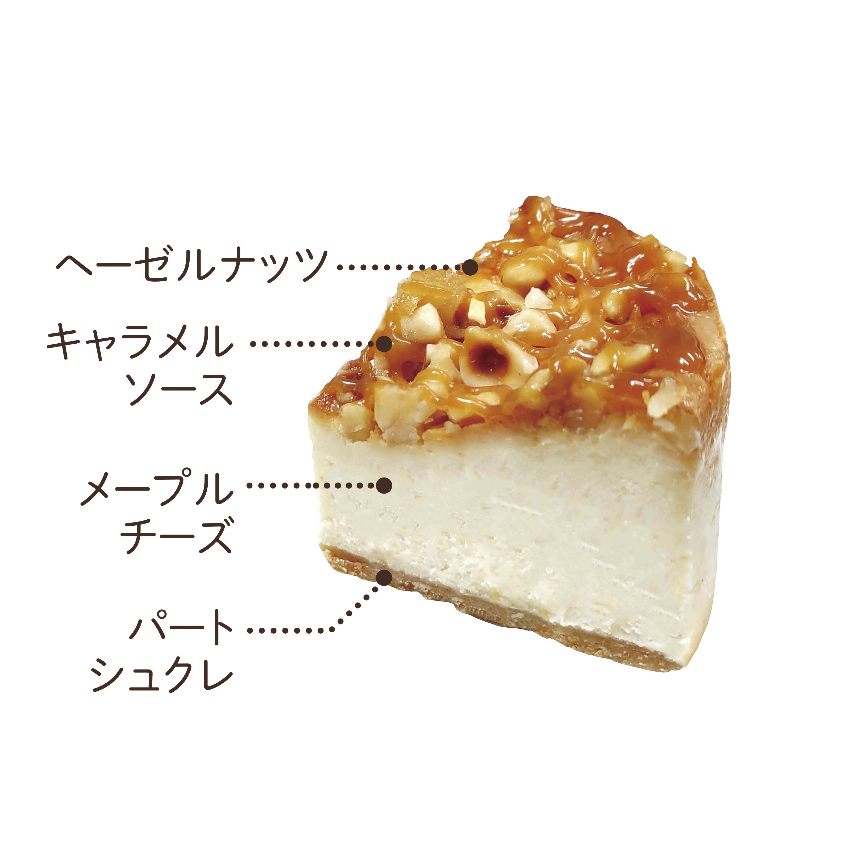 ヘーゼルナッツにとろ~りと甘じょっぱい塩キャラメルソースを加え、国産の牛乳から作ったクリームチーズをたっぷり使った濃厚チーズケーキ。「ココロを満たす」チーズケーキをお愉しみください。