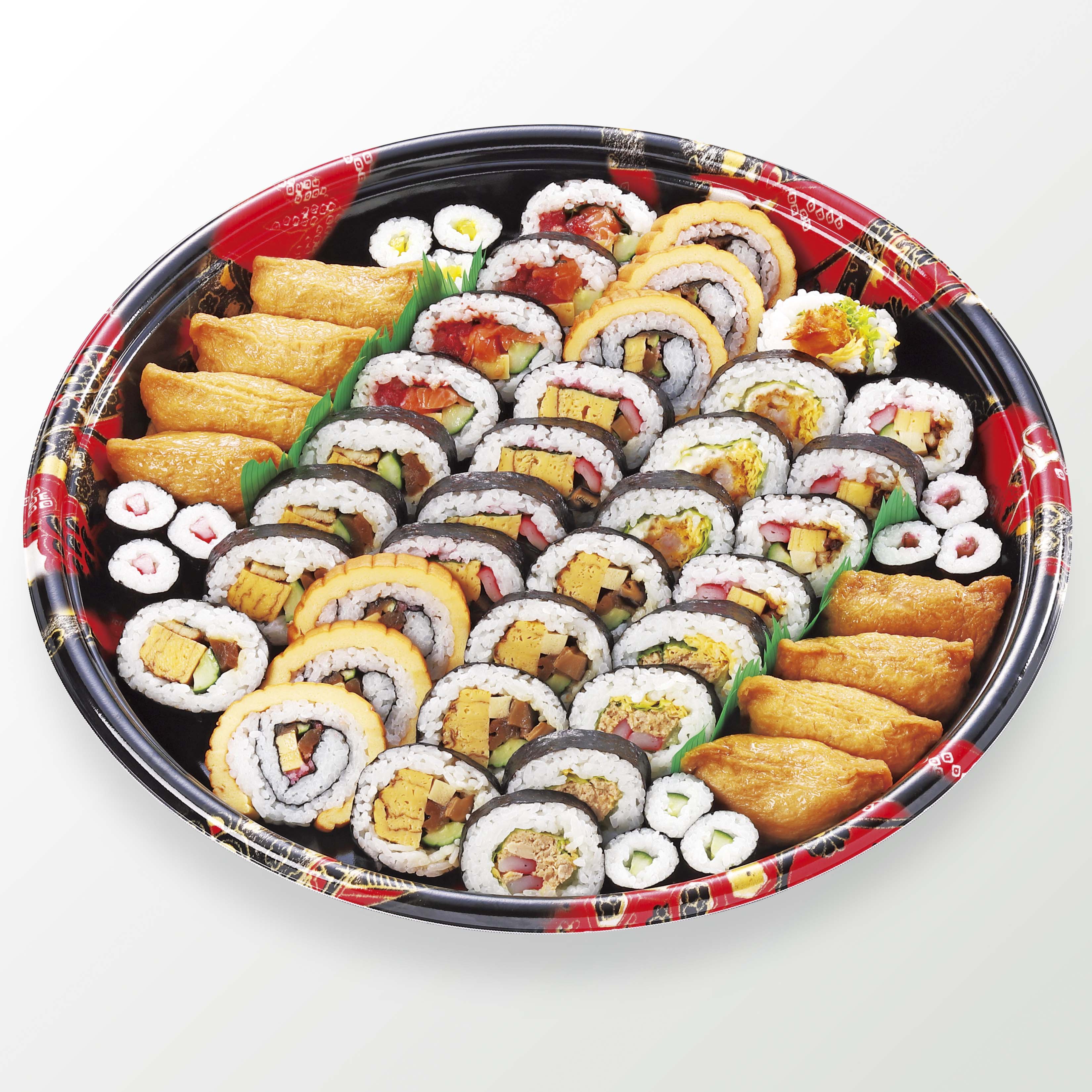 太巻(薄シャリ仕立ての具が旨い巻、ごちそう海鮮まぐろ巻、末広太巻、太巻あなご玉子巻、伊達巻、極太玉子太巻、海老フライ巻、ツナサラダ太巻)、細巻(しんこ、しば、胡瓜、カニ風味カマボコ)、いなり寿司