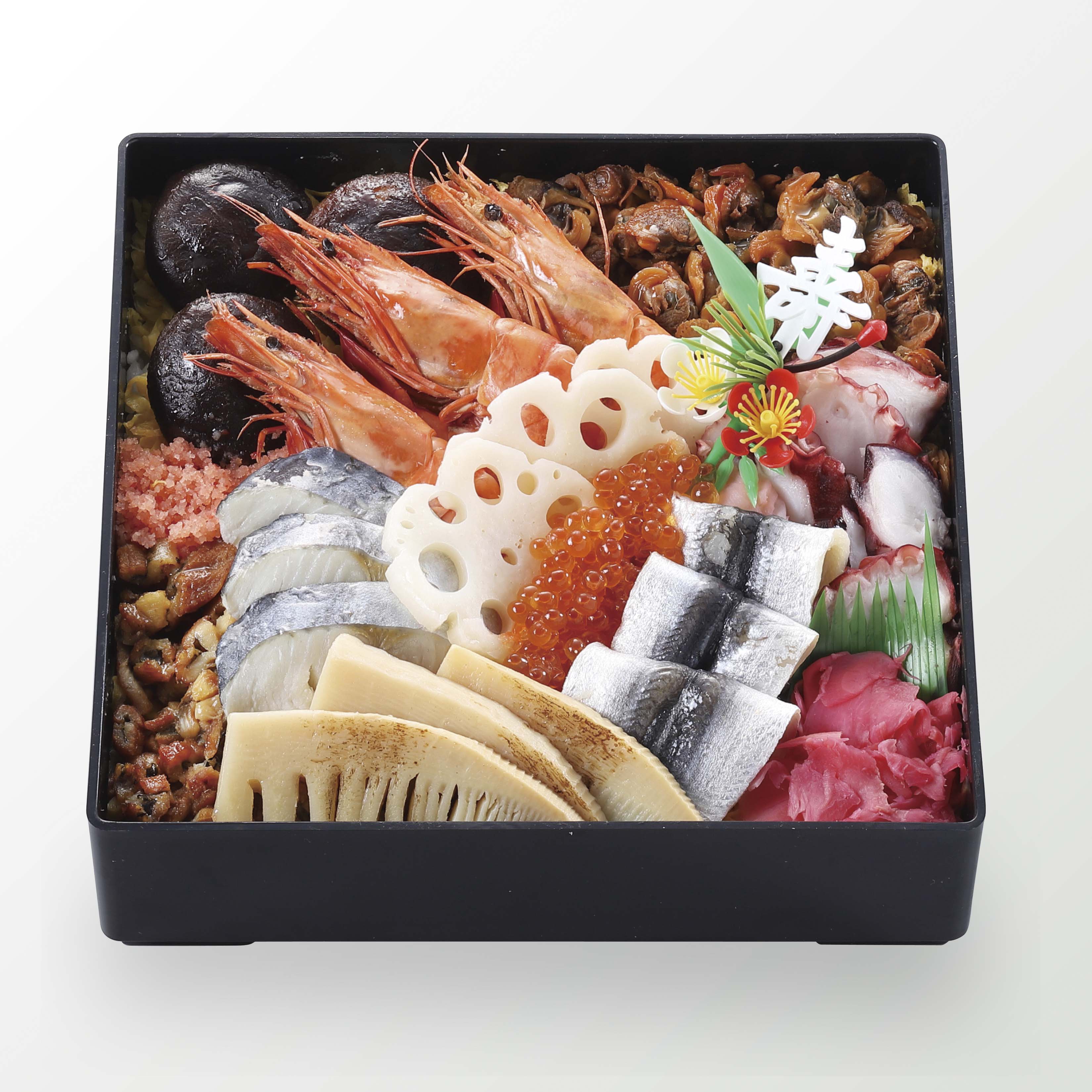新年の門出にふさわしい岡山名物「祭ずし」の豪華版。海老、あなご、鰆、ママカリなど海の幸を中心に贅沢に盛り込んだ贈り物にも差異的な逸品です。